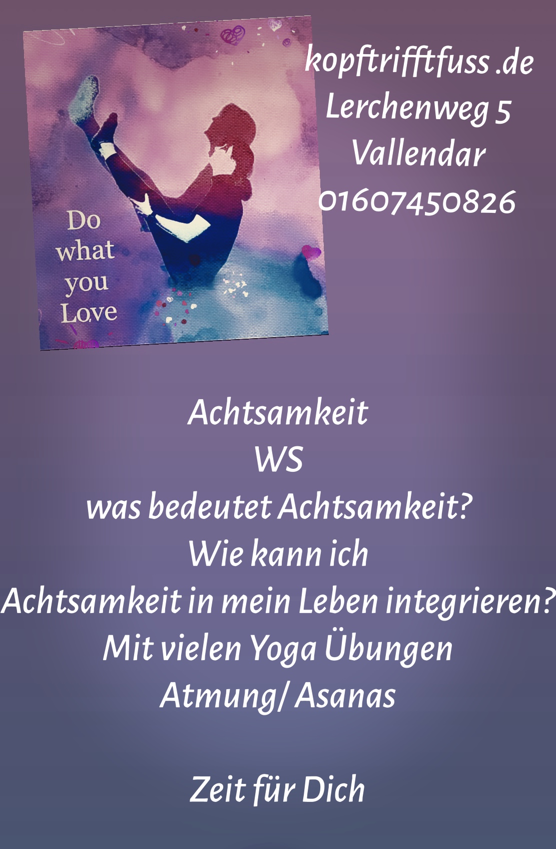 Diese Workshops sind immer Freitags, Samstag oder Sonntags nach Vereinbarung buchbar. Informationen zu aktuellen und anderen Workshops gibt es auf meinem Instagram.